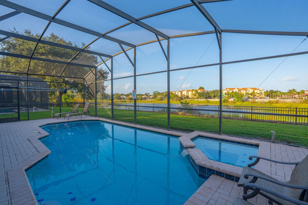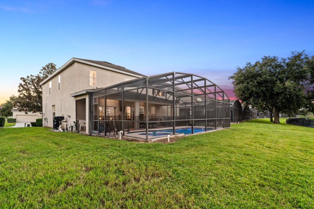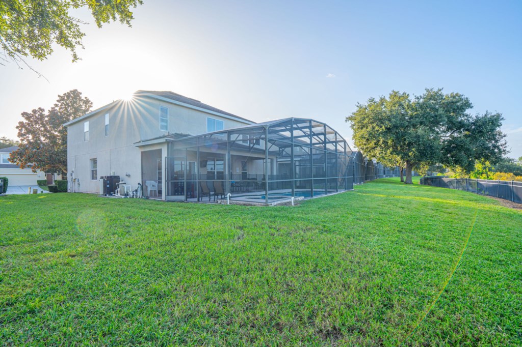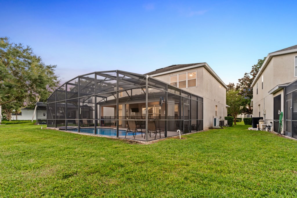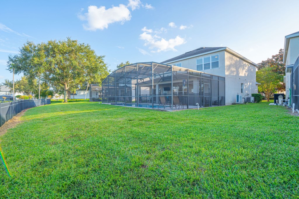 In the backyard you will find a screened-in pool area that does a great job keeping the bugs and leaves out.