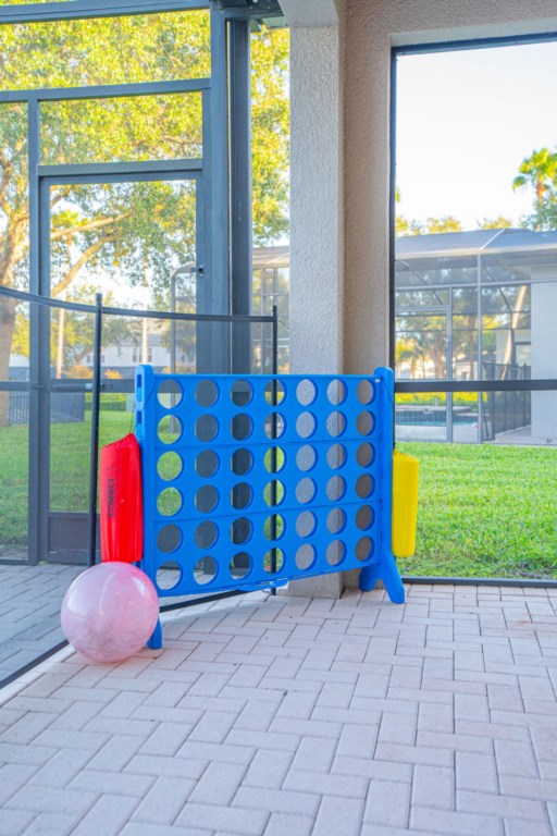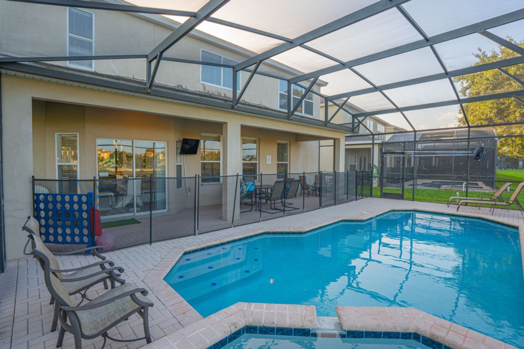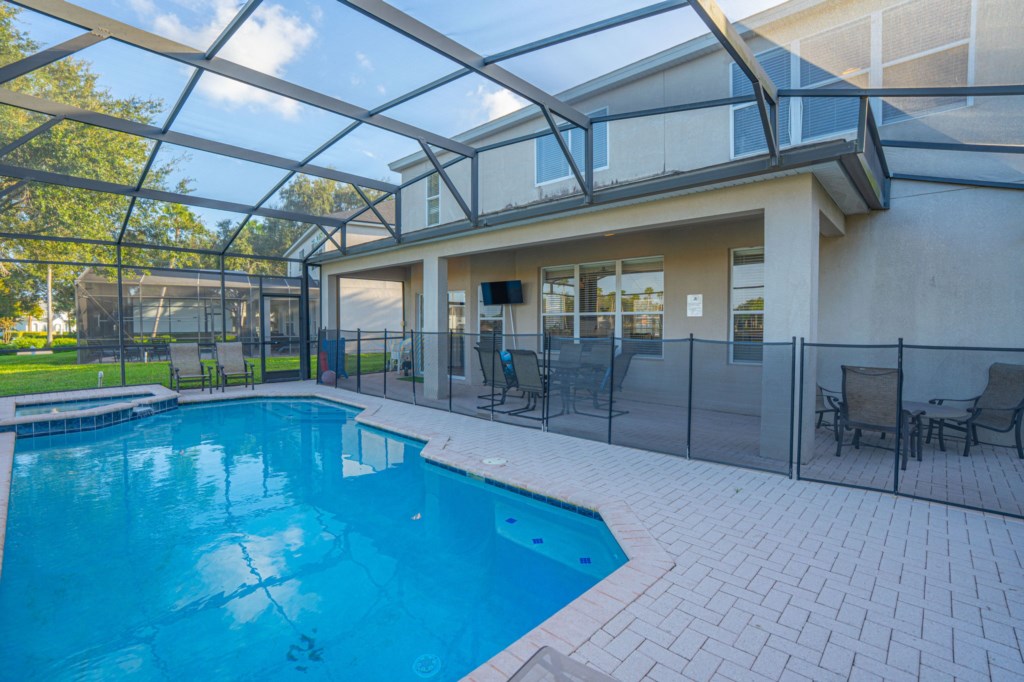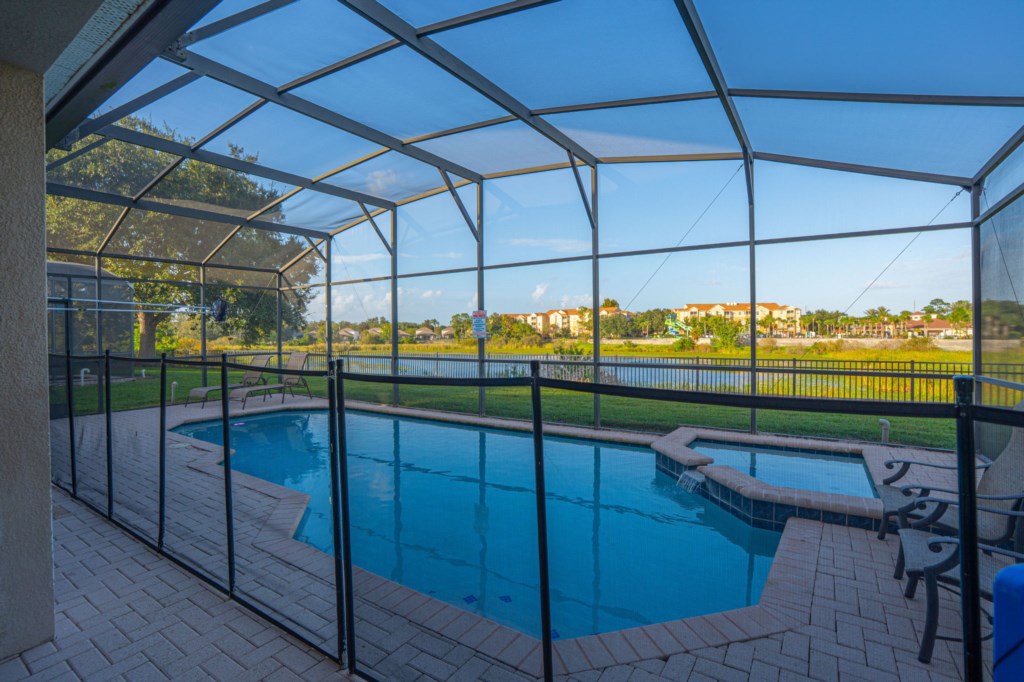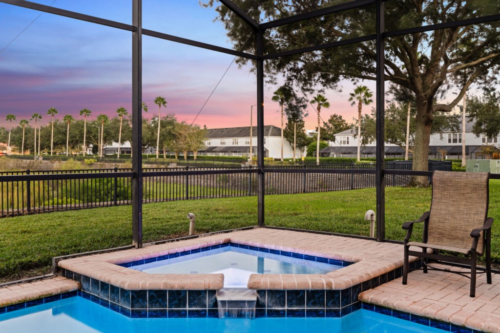 In the backyard you will find a screened-in pool area that does a great job keeping the bugs and leaves out.