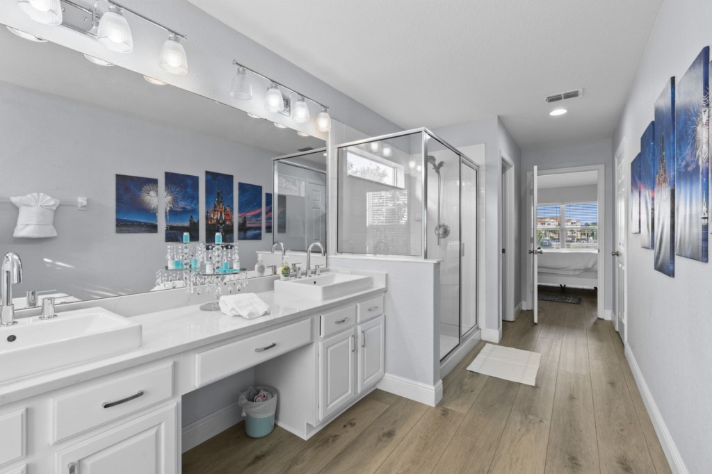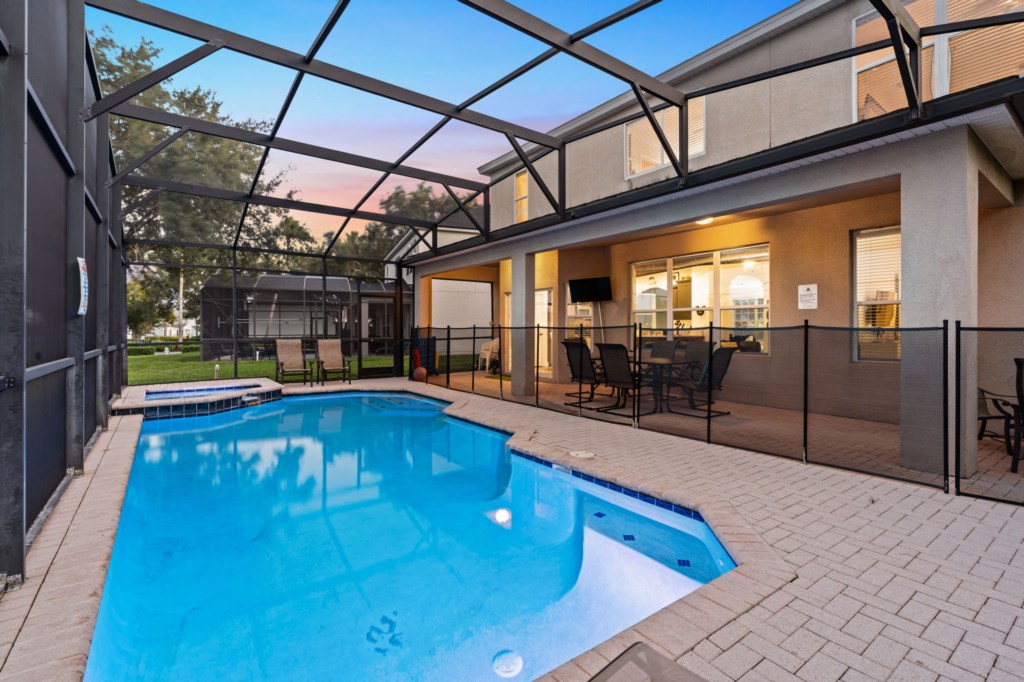 Welcome to the #1 location in Windsor Hills (closest gated resort to Disney). 6-bdrm, 4-bath Villa sleeps 12 + infants. PERFECT location is as close as you can get to the main pool and water park!! Private pool overlooks the lake with NO rear neighbors- new high output heater, and color-changing lights.