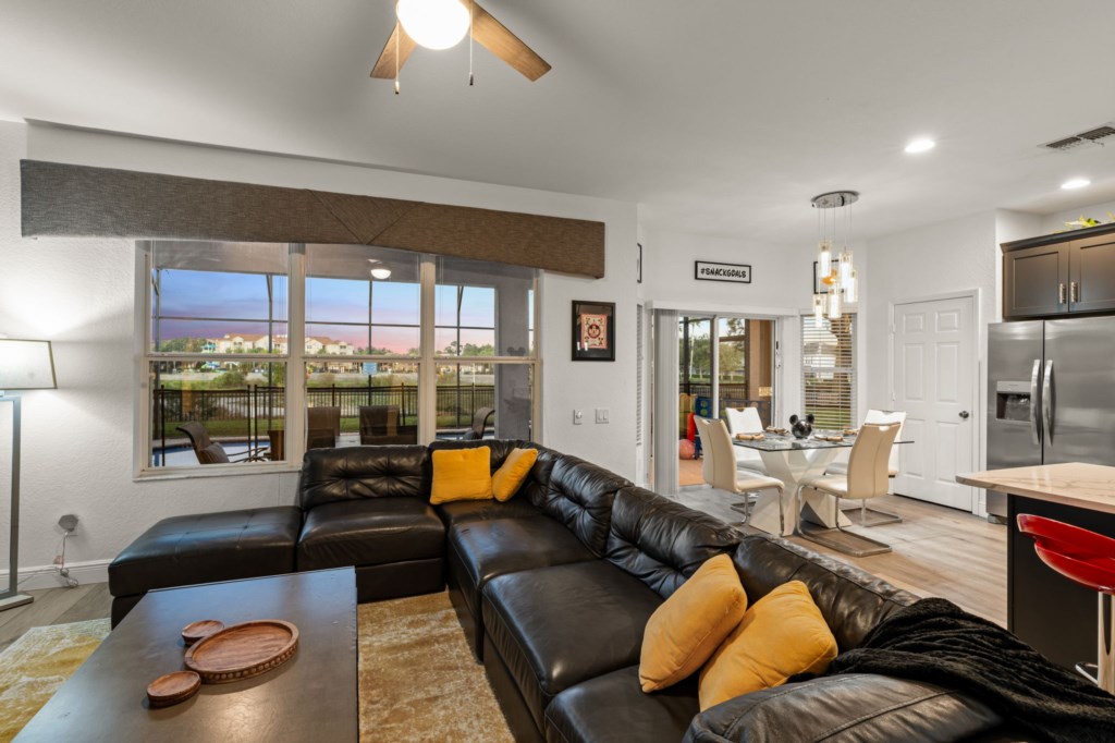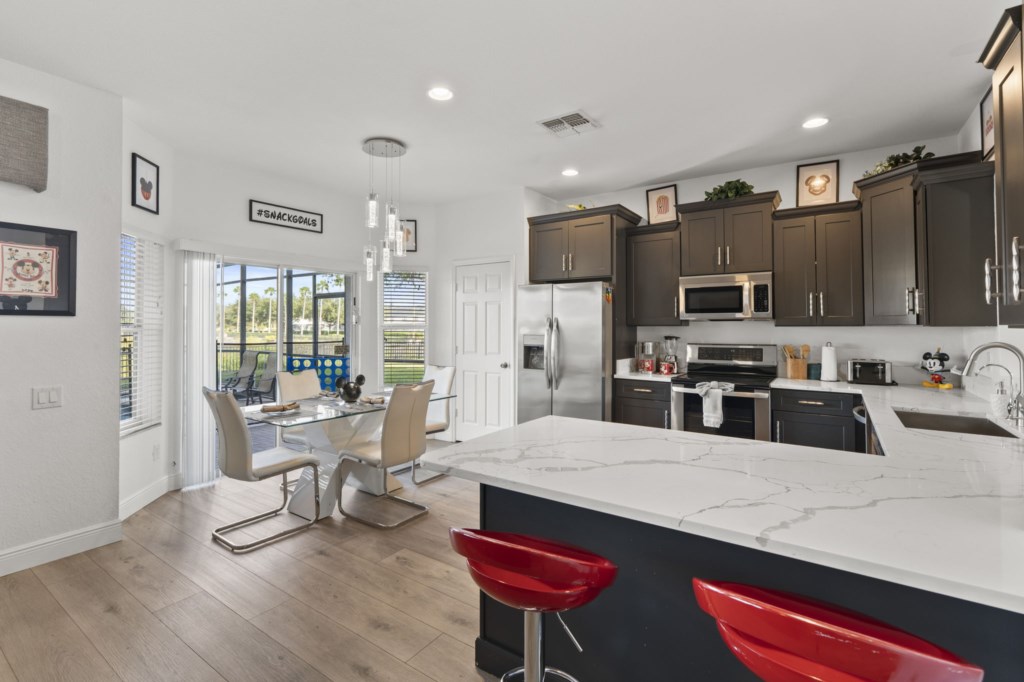 You'll also love the outdoor eating area, second seating area, and loungers. The best part, however, is that your "home away from home" is the second closest Villa to the main pool/club house, overlooks the lake, has no rear neighbors, and boasts views of the nightly Disney fireworks.