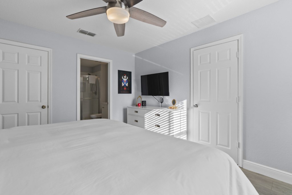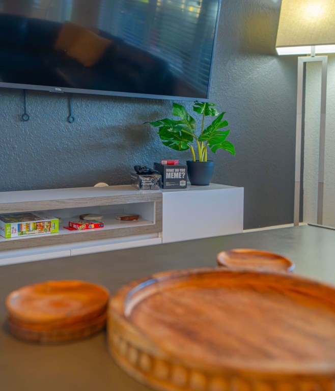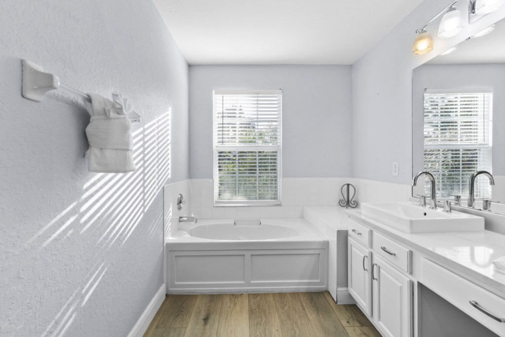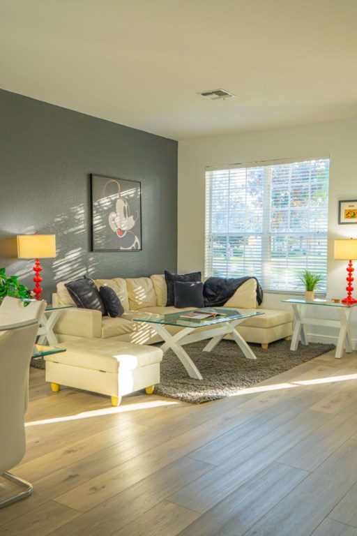 We've added even more for your comfort: brand new floors and stairway (absolutely no carpet or old tiles), brand new higher baseboards throughout, accent paint and decor that ties the home together and will be sure to please you and your fellow guests. We've also added TVs to all bedrooms and to the pool area, plus a massive 70-Inch TV in the main living room (which also boasts a brand new premium leather sectional and new furniture).
