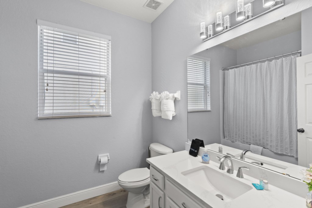 Windsor Hills is the closest resort to Disney. Enjoy the beautiful grounds, massive community pool, new multi-million dollar waterpark, clubhouse, fitness center, sports courts, theatre, arcade, parks, and more, all while vacationing securely knowing that your family is protected by our gated community and security officers.