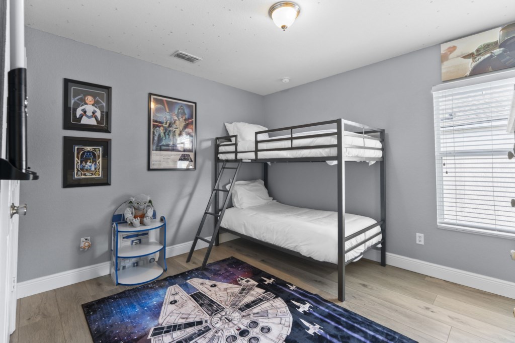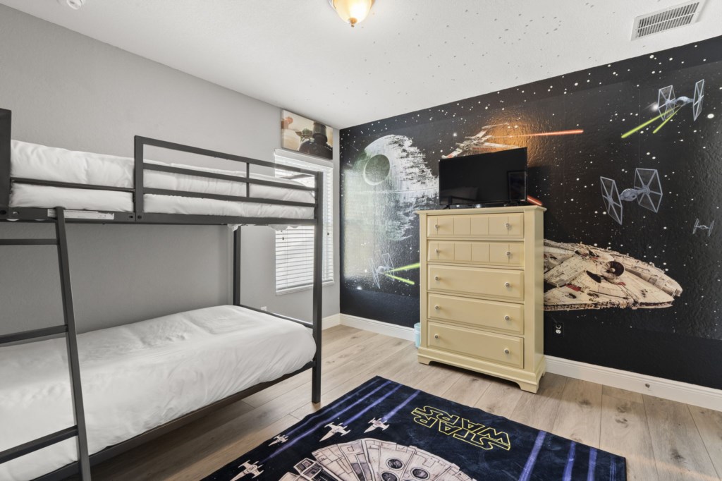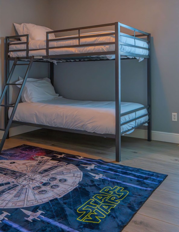 FULLY RENOVATED. You'll love the completely renovated home. The entire kitchen is brand new with custom soft-close cabinets, quartz counters, high-end stainless appliances, premium lighting, and all the cookware you could want. Bedrooms all have brand new beds, new furniture, and new paint; each one also has its own SmartTV where you can watch cable TV or sign-in to Netflix, etc. Bedrooms are designed with families in mind: upstairs you will find a King master (plus full crib), another King suite, a Queen room, a StarWars-themed room (twin bunks), and a Princess-themed room (two twins). On the main level you will find another Queen bedroom as well.