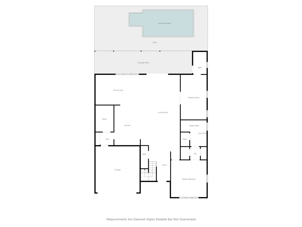Pool seating area leads to a private swimming pool and spa/hot tub