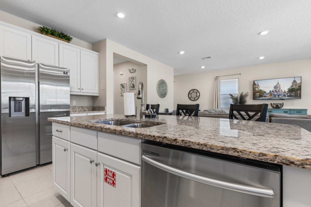 Fully equipped luxury kitchen with refrigerator/ice & water dispenser, dishwasher and island unit