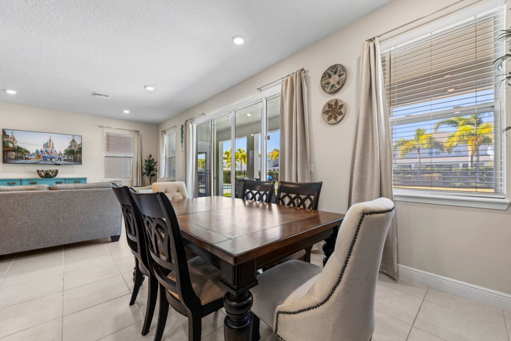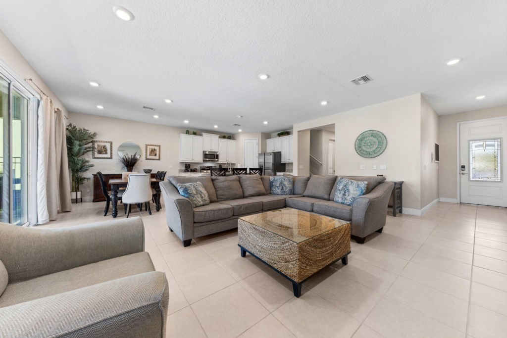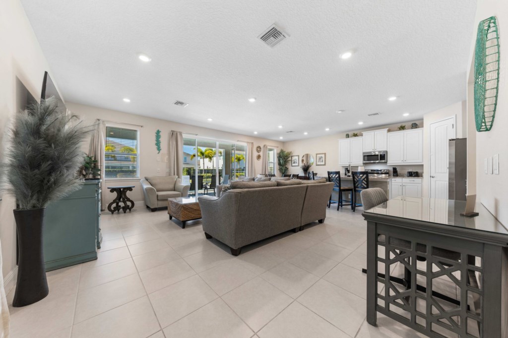 Beautiful, open plan,Large family/kitchen room leading onto a large pool deck with seating.