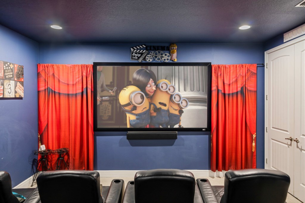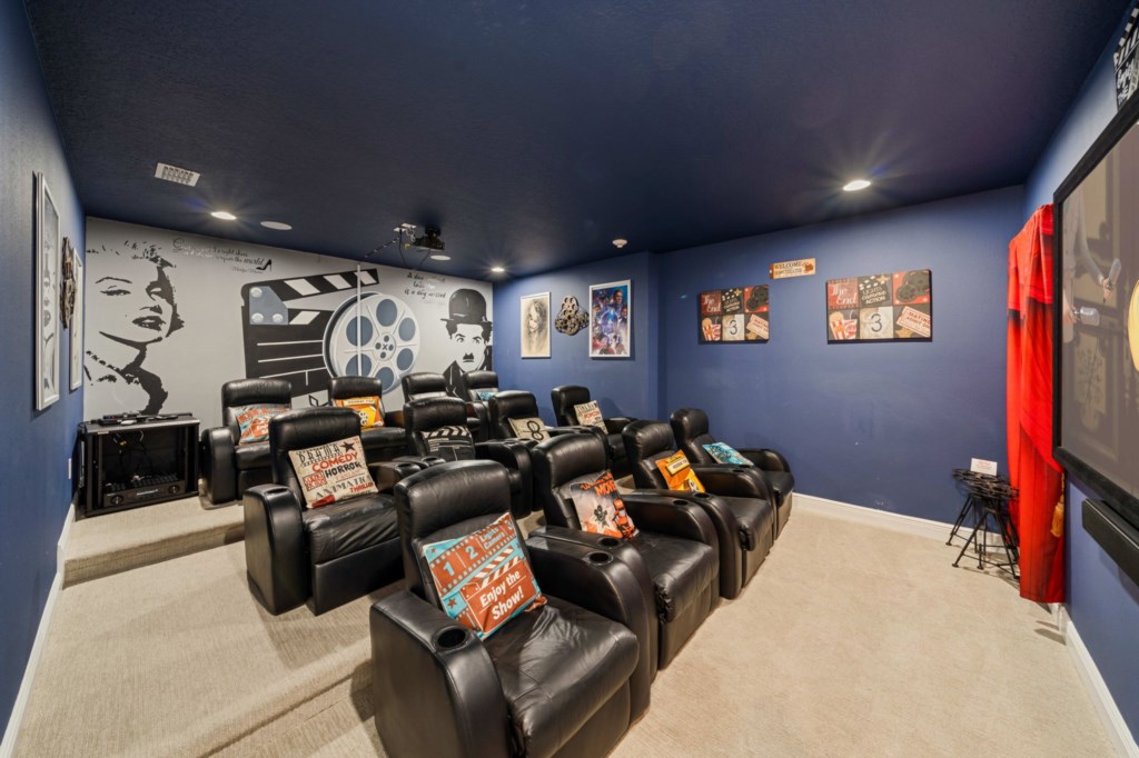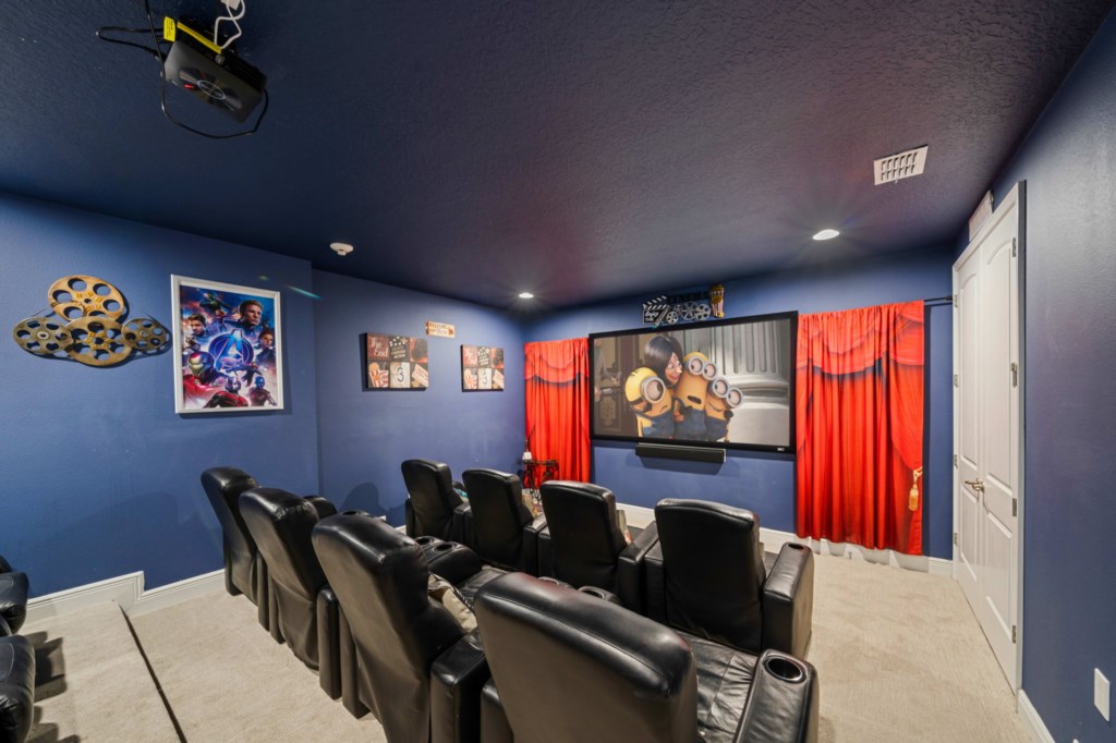 • Dedicated home theater with projector screen and comfortable seating for both adults and kids