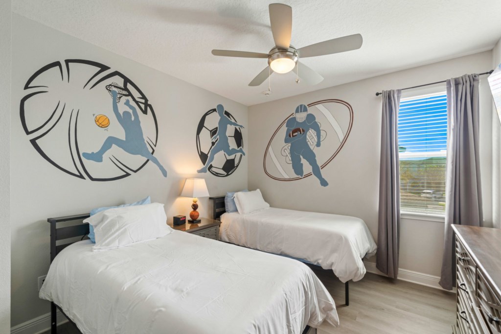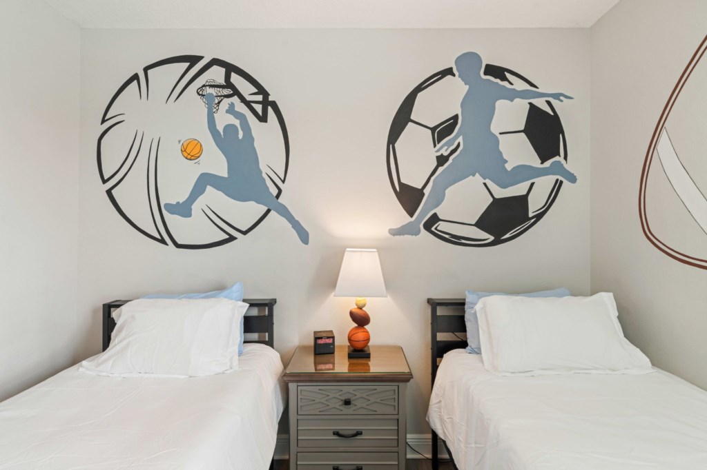 Bedroom 7 - Sports themed room with 2 Twin beds and ensuite shower
