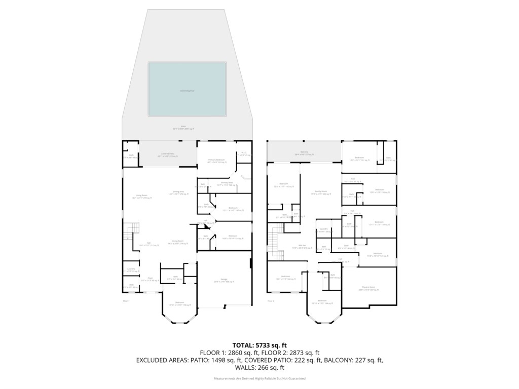 • Nine private en-suite bathrooms, one shared full bath and three powder rooms (one on each floor, plus an outdoor pool bathroom)