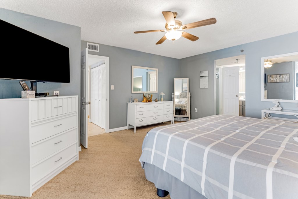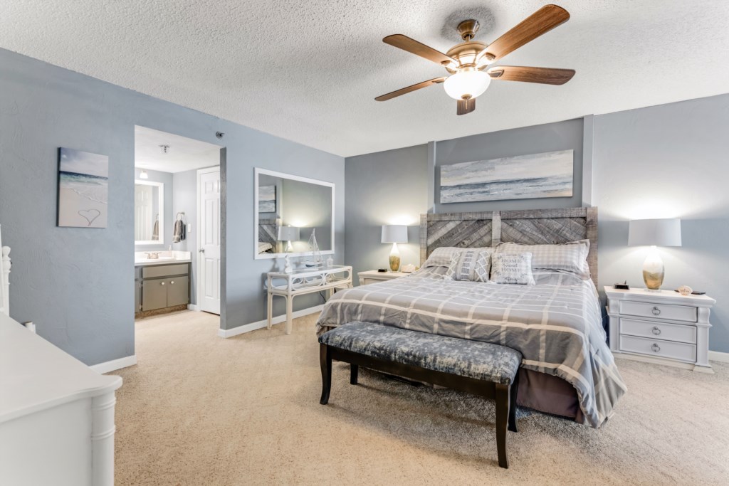 A master suite with a king bed, ensuite bath.