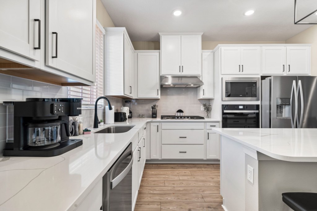 Fully equipped luxury kitchen with refrigerator/ice maker, Coffee maker, blender, toaster, dishwasher and gas stove.