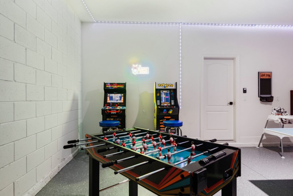 Games room Ping Pong, TV, Foosball, Arcade games with over 3000 games and a Pacman arcade