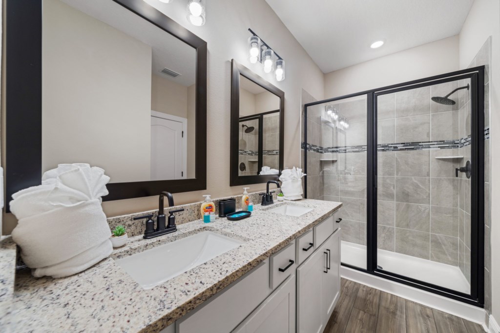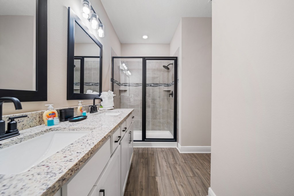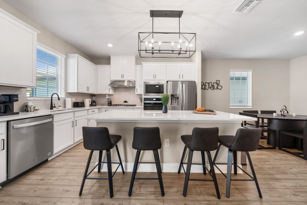This stunning space is well equipped with modern appliances and equipment including washer/dryer, dishwasher, coffee maker, microwave, tv’s in all bedrooms, fantastic themed games room and much more, all within 6 miles of the Disney Parks. Grocery shopping and restaurants are directly across the street and Walmart only a few minutes up the road. Located in the popular and prestigious Reunion Resort, this is an excellent base for visiting all that Orlando has to offer in peaceful and luxury surrounds.