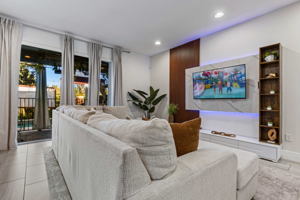 Large open plan family room leading onto the amazing pool deck