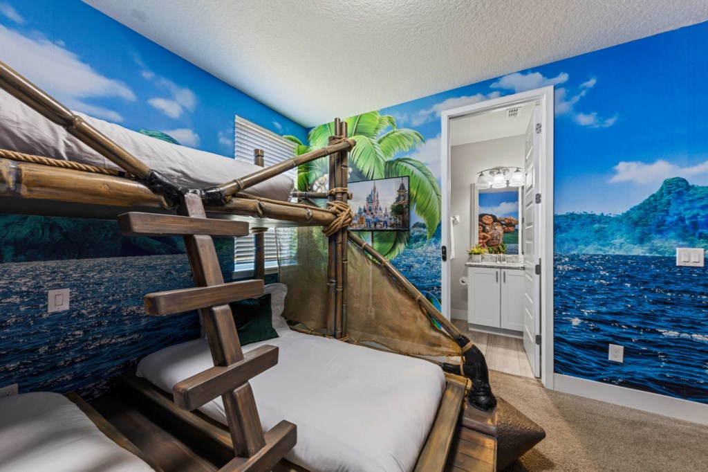 Bedroom 8 - Moana themed bedroom with bunk bed (3 Twin beds) and ensuite bathroom
