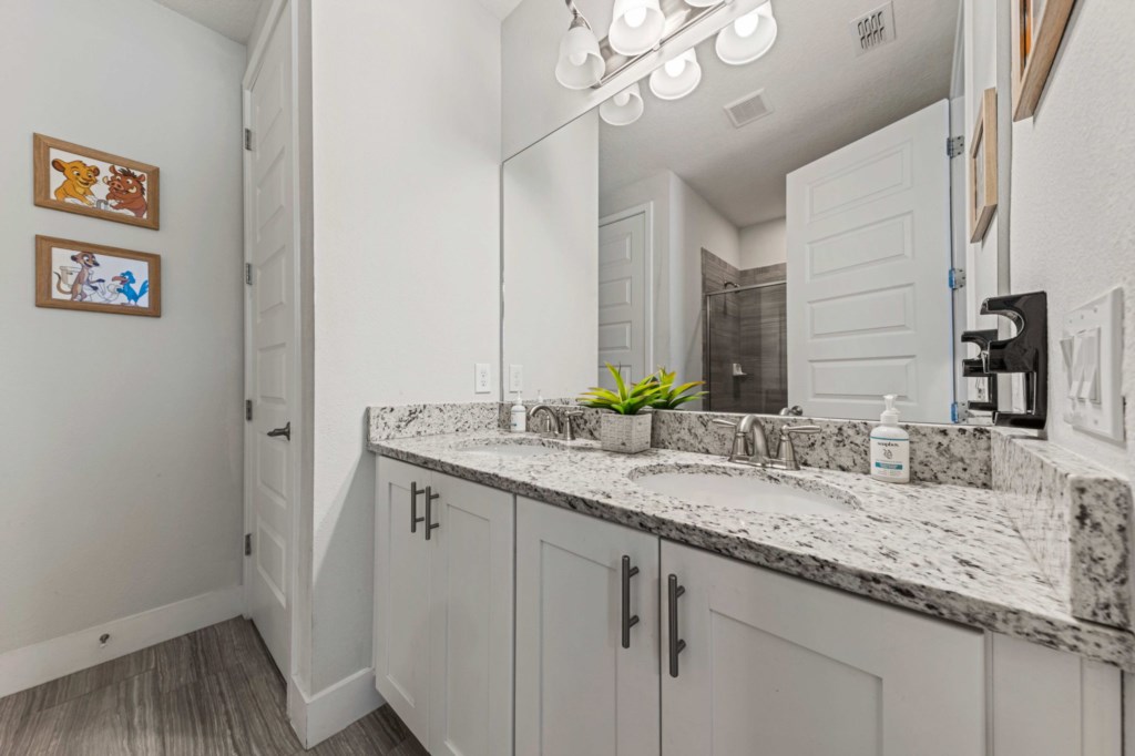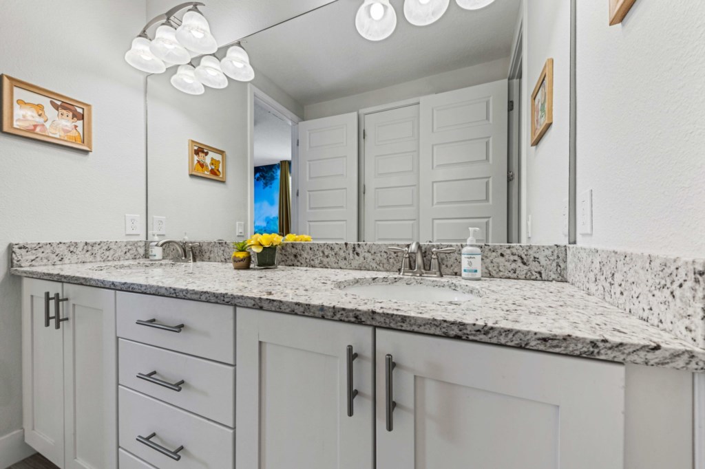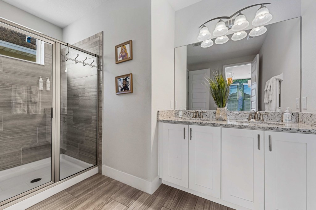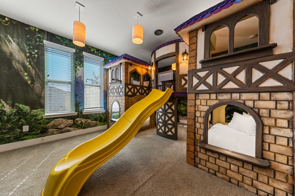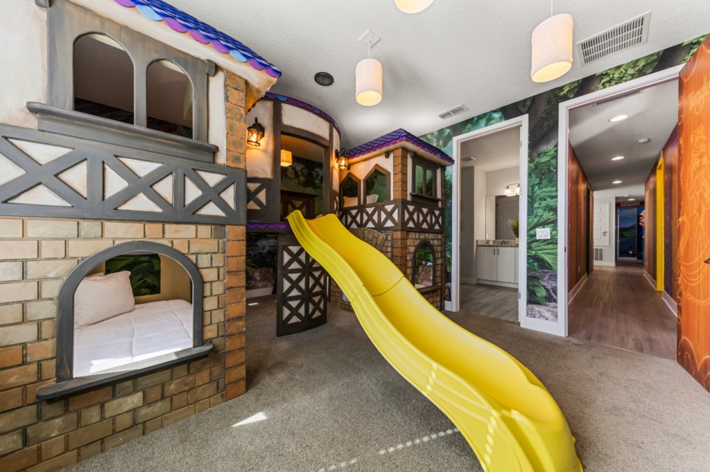 Bedroom 6 - Tangled themed bedroom with bunk beds (4 Twin beds) and ensuite bathroom.
