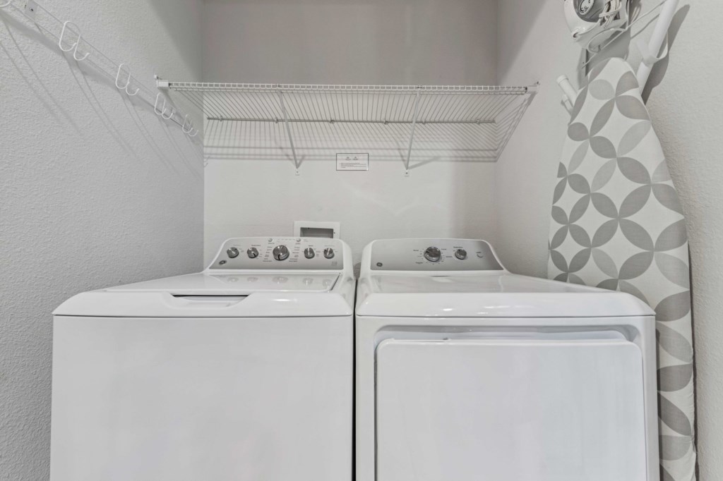 Utility closet with washer, dryer, iron & ironing board