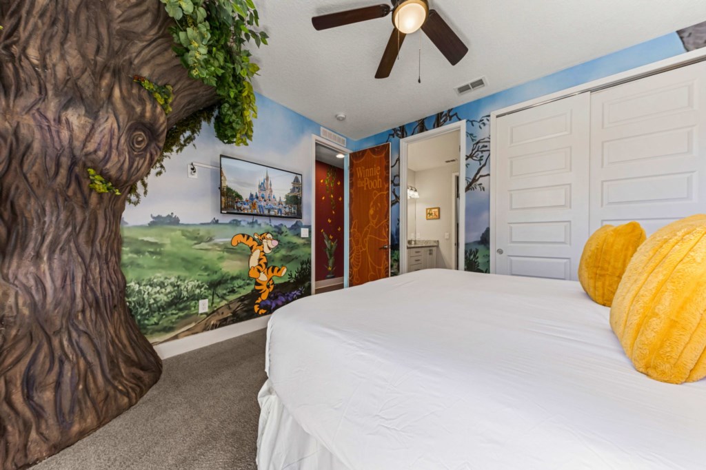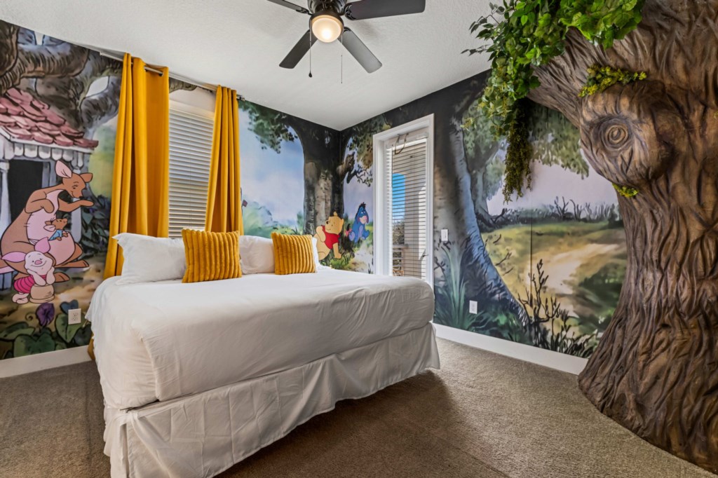 Bedroom 5 - Winnie the Pooh themed bedroom with King bed. Door to balcony