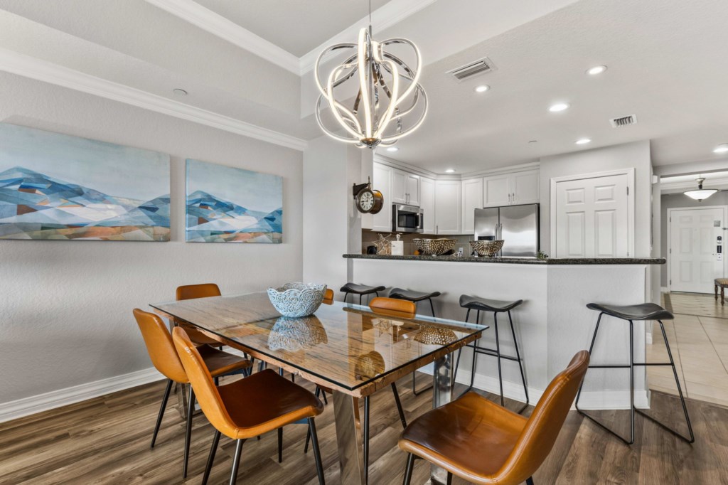 Dining area with table & chairs for 6
