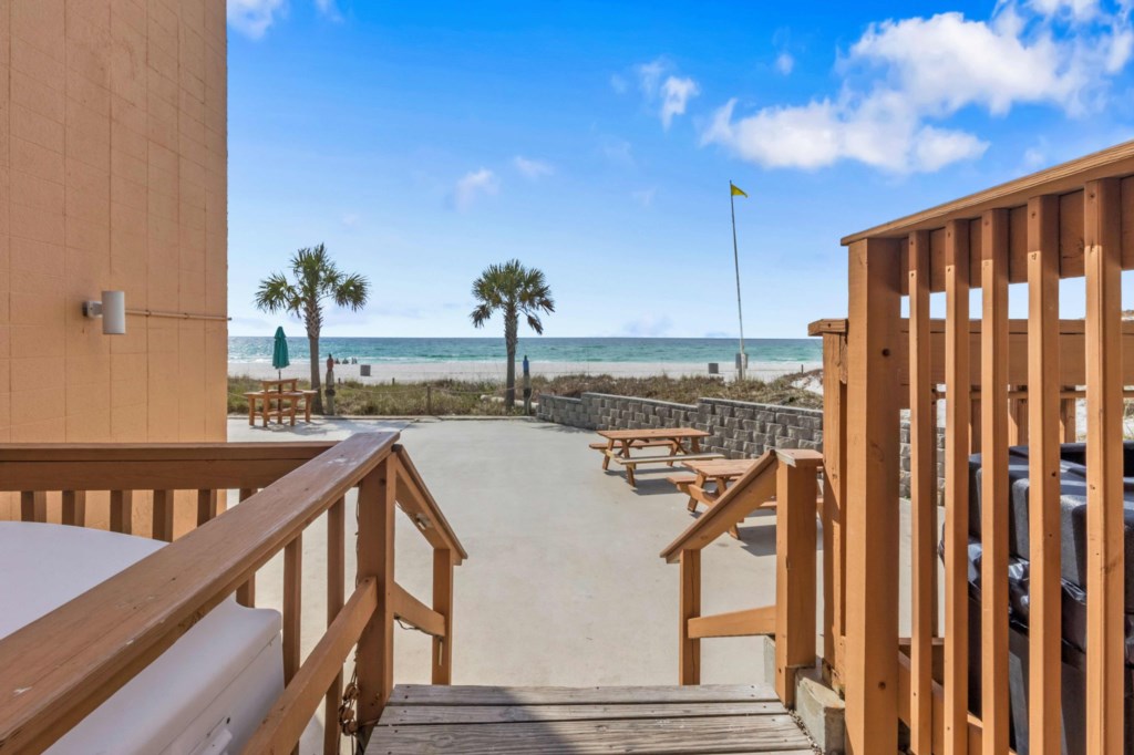 Located just a couple steps from your door to the sugar white sands of the gulf!